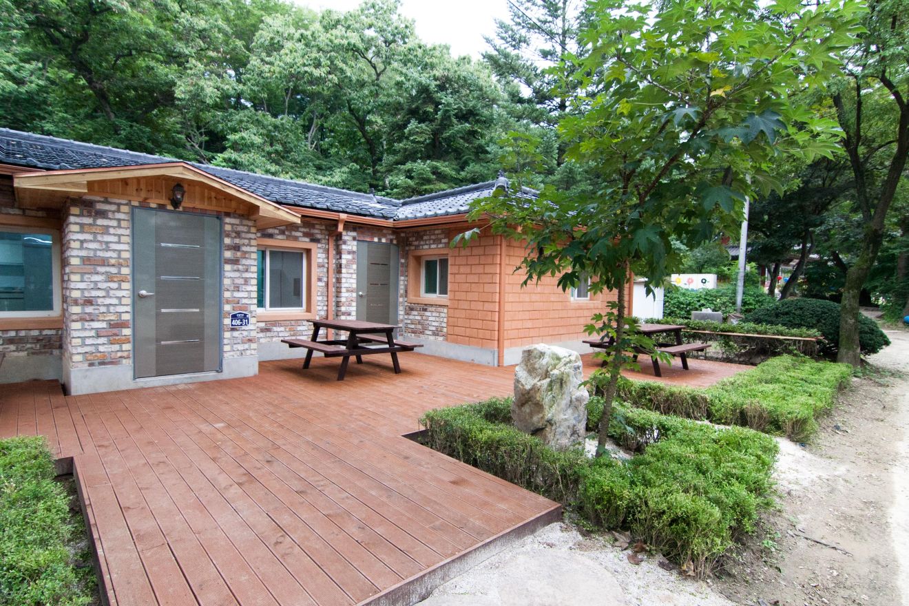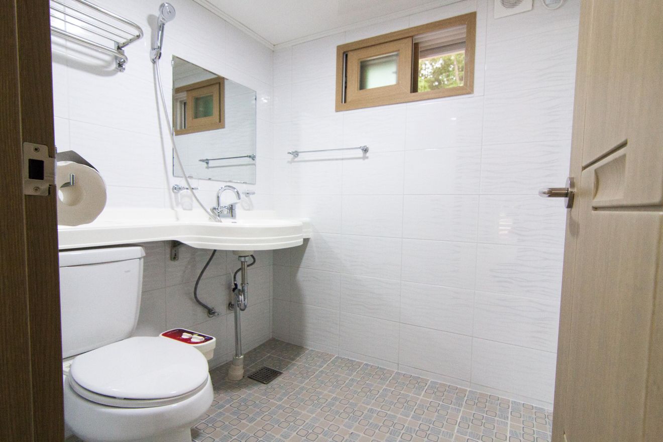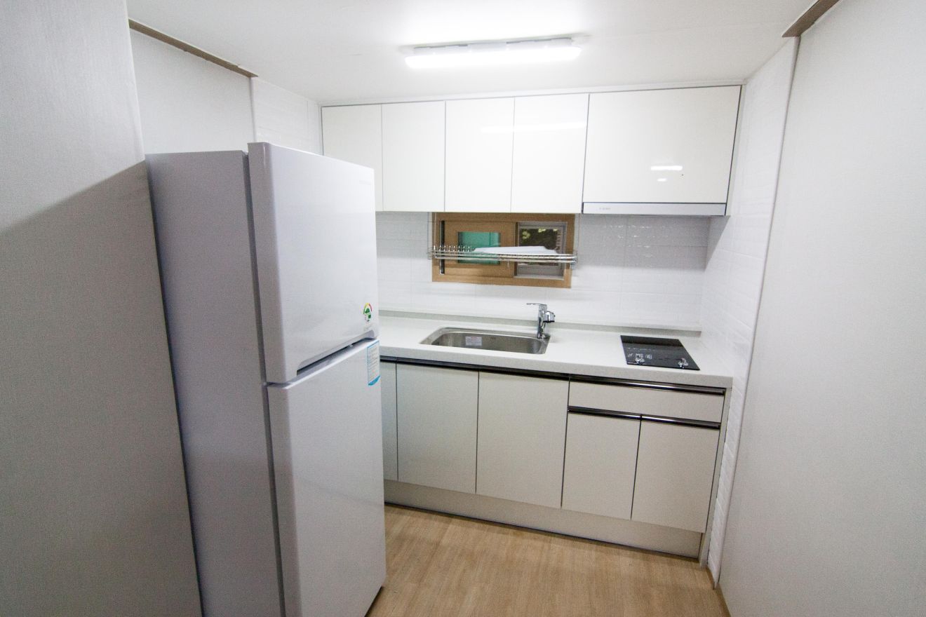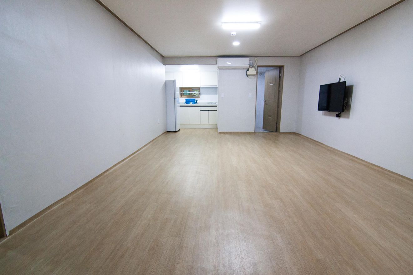 10인실, 투룸(거실, 방, 주방, 욕실, 객실 앞 테라스) LCD TV, 에어컨, 냉장고, 인덕션, 주방기구, 비데 등